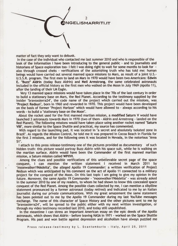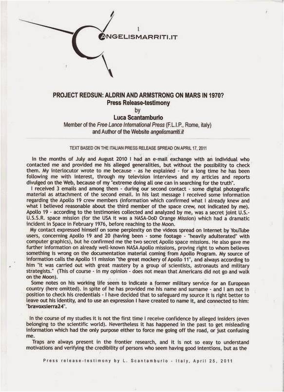 Source: angelismarriti.it Document: PROJECT REDSUN: ALDRIN AND ARMSTRONG ON MARS IN 1970? Author: Luca Scantamburlo (Free Lance International Press) Date: April 25, 2011